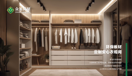這正是眾美其屋始終秉持“為愛為家”理念的生動體現(xiàn)。用心雕琢每一寸家居空間。家,是心靈的歸處,而用眾美其屋板材打造的衣帽間,是這歸處里最溫暖貼心的角落。它承載著我們對美的向往、對生活的熱愛,眾美其屋以匠心守護(hù)這份美好。眾美其屋讓家成為心中永遠(yuǎn)眷戀的詩意桃源,讓美好在每一個日常中肆意綻放。