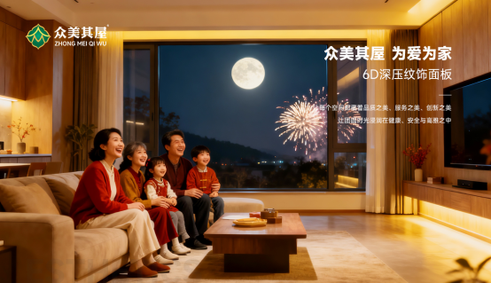 月滿中秋,家國同輝。在這個(gè)團(tuán)圓與榮耀交織的美好時(shí)刻,眾美其屋懷揣對(duì)家國的赤誠熱愛,以匠心板材為紐帶,串聯(lián)起每一個(gè)小家的幸福與大國的昌盛。憑精湛工藝與環(huán)保理念,為每個(gè)家庭打造既具東方古典神韻、又融合現(xiàn)代時(shí)尚氣息的理想家園,讓每一次歸家都成為心靈的慰藉。