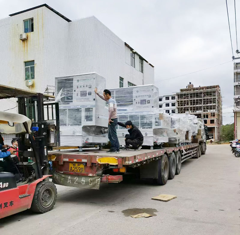 2022年1月19日福建工廠,訂購的自動退膜退錫蝕刻線到廠,該機全長32米