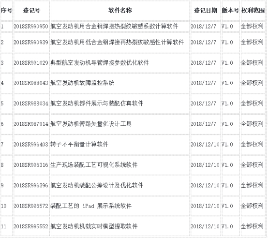 從官方渠道獲悉,航天智造(廈門)科技研究院已經(jīng)獲得的如下17項(xiàng)目航空軟件系統(tǒng)完整的知識(shí)產(chǎn)權(quán)授權(quán)(航天智造相關(guān)軟件登記信息)