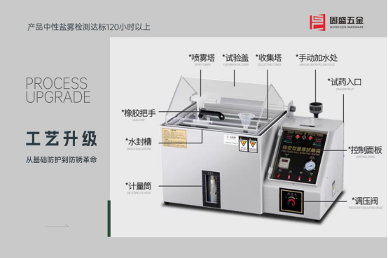 固盛五金對品質(zhì)的執(zhí)著,首先體現(xiàn)在電鍍工藝的階梯式突破中。以核心產(chǎn)品二段力鉸鏈為例,從最初的本色鍍鎳,到進(jìn)階的槍灰色處理,再到如今的鈦金電鍍,每一次升級都指向更嚴(yán)苛的防銹標(biāo)準(zhǔn)。通過三層電鍍防護(hù)技術(shù),其產(chǎn)品中性鹽霧檢測達(dá)標(biāo)120小時以上,酸性鹽霧測試突破24小時,真正實現(xiàn)“防銹堪比不銹鋼”的效果,甚至達(dá)到“鐵可泡水級別”的全新水準(zhǔn)。這種對工藝細(xì)節(jié)的打磨,讓看似普通的鉸鏈擺脫了“易生銹、壽命短”的刻板印象,成為耐用性的代名詞。