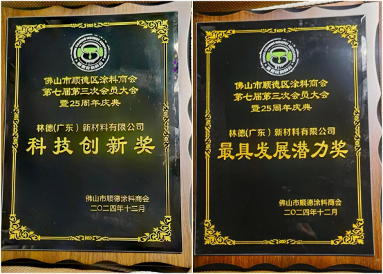 12月18—19日,林德漆在順德與北京兩地的行業(yè)盛會(huì)上再次大放異彩。在順德涂料商會(huì)25周年盛典上,林德漆榮獲“科技創(chuàng)新獎(jiǎng)”與“最具發(fā)展?jié)摿Κ?jiǎng)”。在中國建筑裝飾裝修材料協(xié)會(huì)五屆五次會(huì)員代表大會(huì)暨五屆理事會(huì)第五次會(huì)議上,林德漆又?jǐn)孬@“2024年度建筑涂裝行業(yè)技能人才培養(yǎng)先進(jìn)單位”、“華涂獎(jiǎng)——仿石漆卓越品質(zhì)金獎(jiǎng)”兩項(xiàng)殊榮,同時(shí)多位公司高層也榮獲個(gè)人榮譽(yù)。這些成就充分體現(xiàn)了林德漆在人才培養(yǎng)、技術(shù)創(chuàng)新及產(chǎn)品質(zhì)量等多個(gè)方面取得的顯著成果和競(jìng)爭(zhēng)優(yōu)勢(shì)。