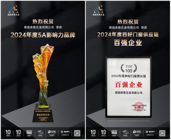 在頒獎(jiǎng)環(huán)節(jié)中,庫勒五金憑借其在門窗行業(yè)的卓越表現(xiàn),榮獲“2024年度5A影響力品牌”和“2024年度門窗四好供應(yīng)鏈百?gòu)?qiáng)企業(yè)”兩項(xiàng)殊榮。這不僅是對(duì)庫勒五金20多年來深耕門窗行業(yè)的深厚底蘊(yùn)和廣泛影響力的充分肯定,更是對(duì)其在品質(zhì)和服務(wù)方面不懈追求的認(rèn)可。