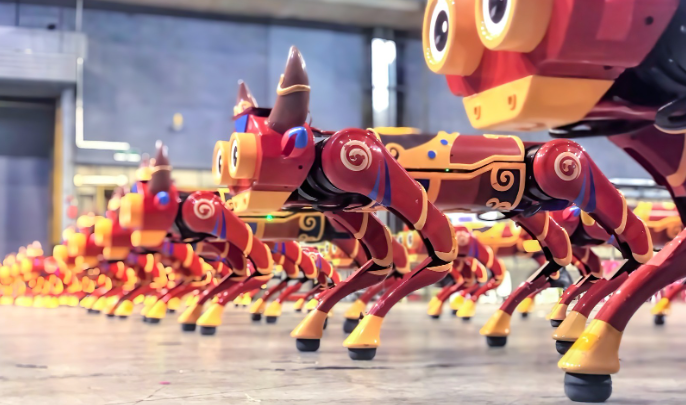 在這其中,支撐整場武術(shù)表演的集群自動控制系統(tǒng),可以實時調(diào)度幾十臺機器人進(jìn)行動作同步。這一技術(shù)可以遷移至工業(yè)場景中的多機器人協(xié)同巡檢、倉儲分揀、裝配流水線等任務(wù),實現(xiàn)規(guī)?;鳂I(yè)的高效統(tǒng)籌。